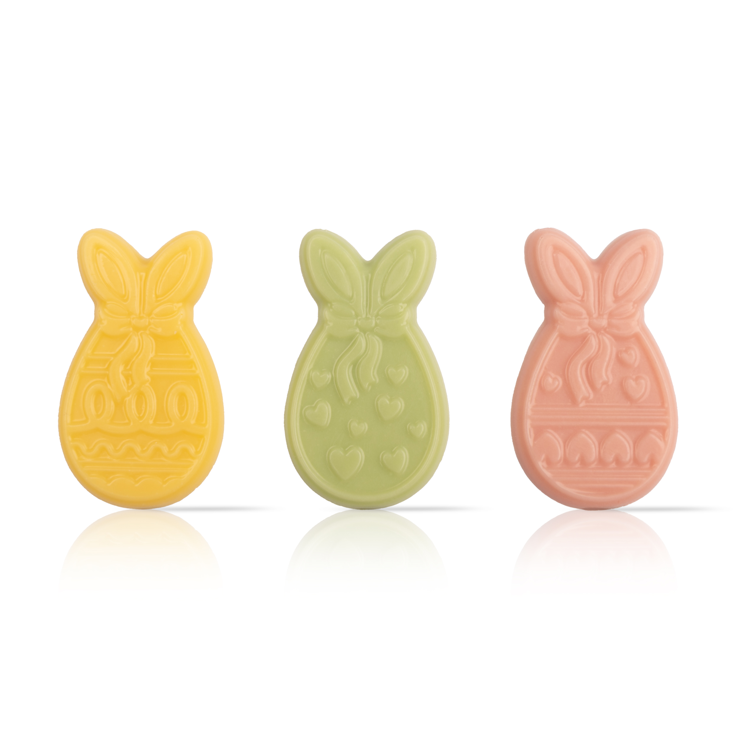 Pastel coloured, chocolate bunny eggs décor.